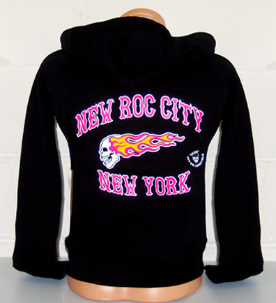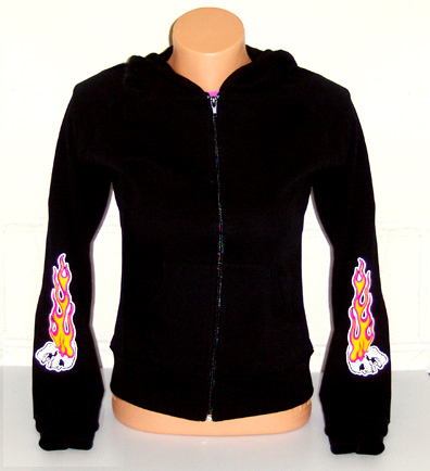 Hooded Sweatshirt NRC Flaming Skull on Back and Sleeves. 100% cotton.